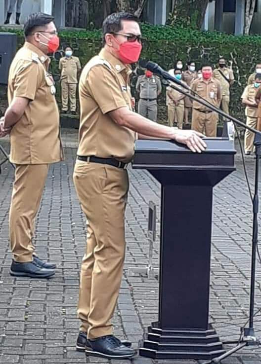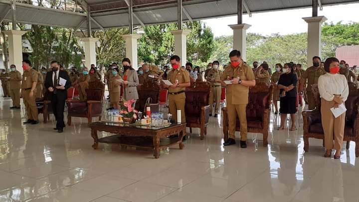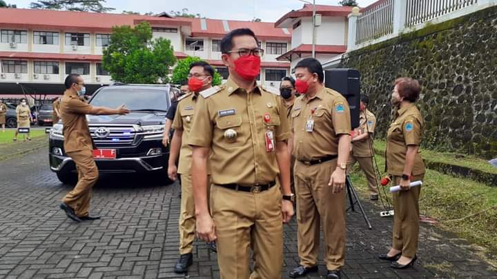 Pelaksanaan apel pagi ini,mengedepankan protokol kesehatan Covid-19,yang di ikuti oleh Sekda,Assisten,Staf Ahli,para Kadis dan ASN dilingkungan Sekretariat Pemkab Minut.Dalam arahannya,Bupati Joune Ganda menyampaikan ASN yang tidak lain adalah abdi negara untuk sungguh-sungguh dalam menjalankan tugas pelayanan publik kepada masyarakat benar-benar berjalan dengan baik.Seluruh ASN agar kiranya selalu meningkatkan kedisiplinan.Mari kita tunjukkan prestasi dan loyalitas kita, apabila itu terbangun tidak ada yang harus di takutkan.
