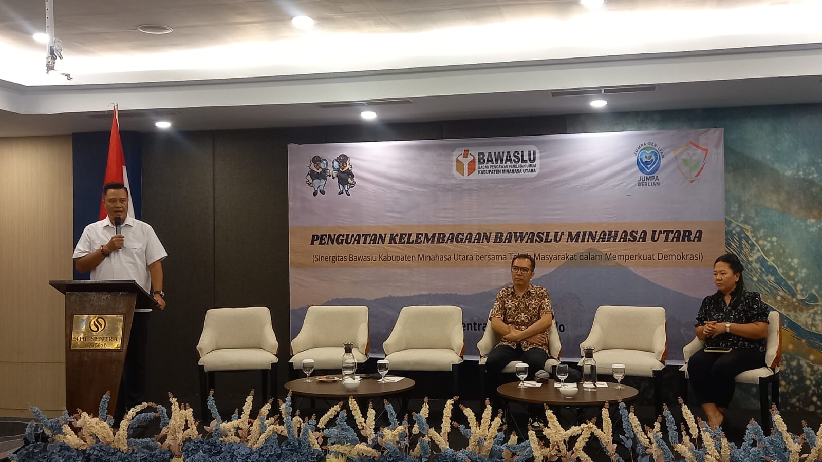 MINUT,Zonakawanua.com_Bawaslu Kabupaten Minahasa Utara menggelar kegiatan penguatan kelembagaan bertema “Sinergitas Bawaslu Minut Bersama Masyarakat dalam Memperkuat Demokrasi” di The Sentra Hotel, Kamis (16/10/25).