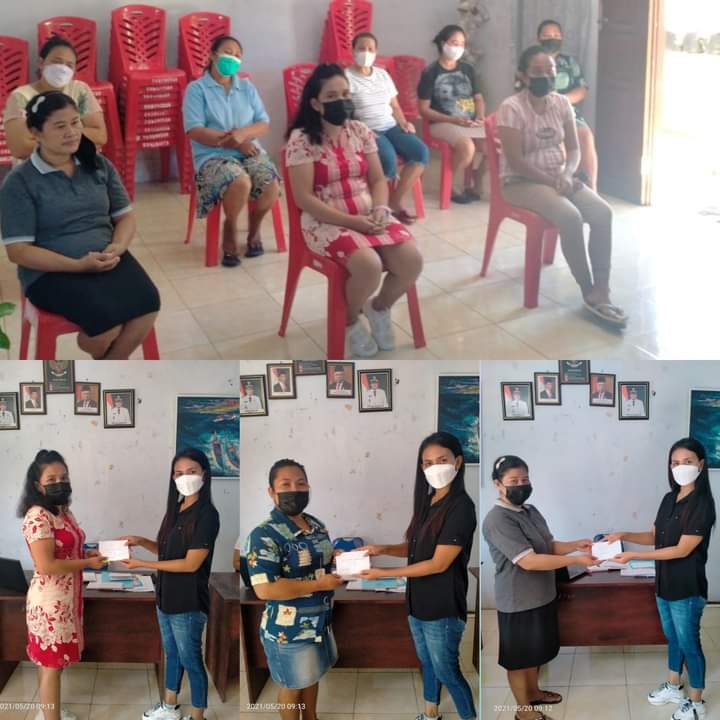 Penyerahan honorarium diserahkan langsung oleh Sekretaris desa Rani L. Tahulending kepada 5 Guru Paud , 3 Kader Posyandu, 1 Kader Kesehatan dan 1 Kader Pembangunan Manusiia,di kantor Hukum Tua, Kamis (20/05/21).