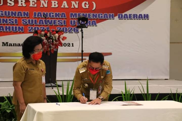 Dalam kesempatan itu, Gubernur Olly menjelaskan visi dan misi RPJMD Sulut Tahun 2021-2026. “Visi pembangunan Sulut sebagaimana termuat dalam RPJMD Tahun 2021-2026 adalah Sulawesi Utara maju dan sejahtera sebagai pintu gerbang Indonesia di Asia Pasifik,” ungkapnya.