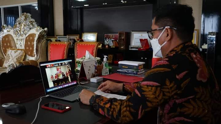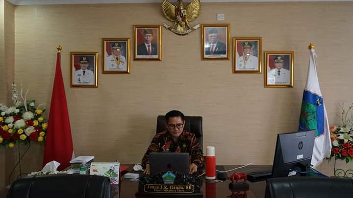 Bupati Joune JE Ganda, SE membuka Musyawarah Perencanaan Pembangunan Rencana Pembangunan Jangka Menengah Daerah Kabupaten Minahasa Utara Tahun 2021-2026 secara virtual Video Conference (Vidcon) dari ruang kerja Bupati, dan diikuti oleh Organisasi Perangkat Daerah (OPD) di masing-masing tempat, Kamis (22/07/21).