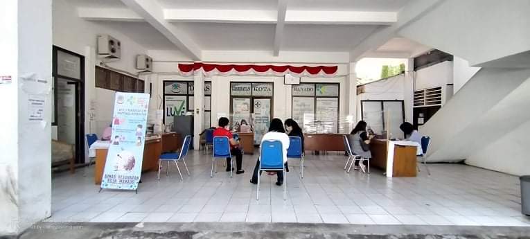 Terpantau, situasi di Dinas Kesehatan Kota Manado nampak sepi. Hanya beberapa petugas yang terlihat melakukan pelayanan dari pendaftaran, skrining, vaksinasi hingga observasi dan pencatatan.