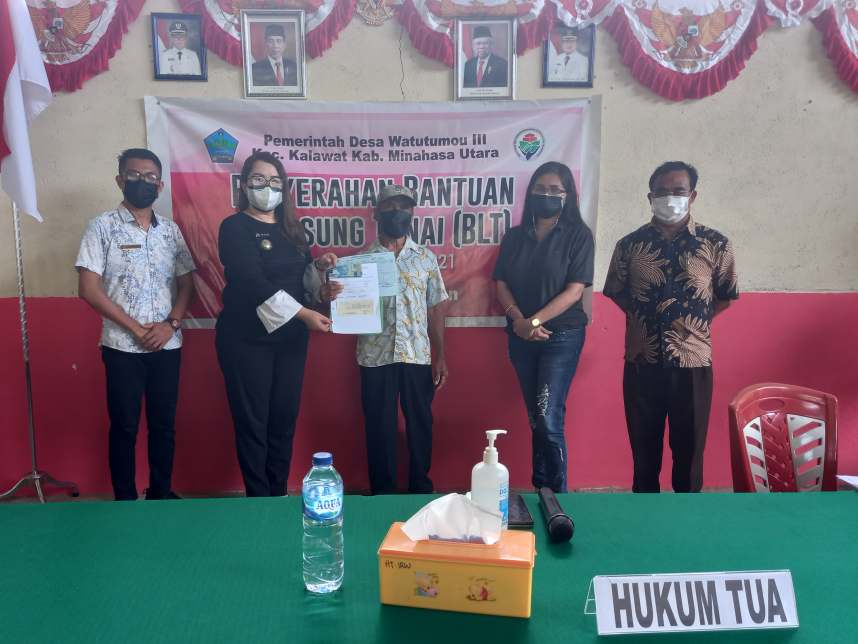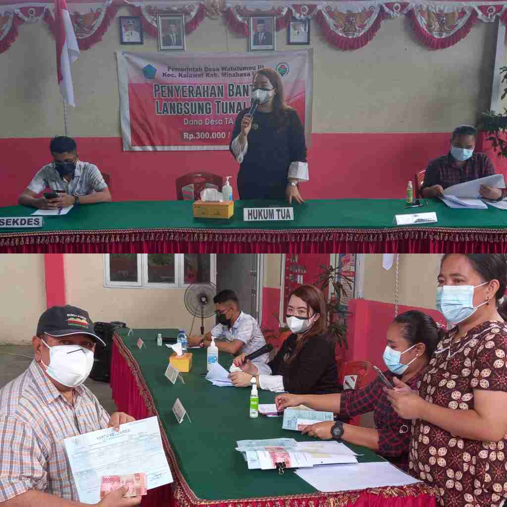 ZONAKAWANUA.COM,MINUT_Pemerintah Desa Watutumou III kembali menyalurkan Bantuan Langsung Tunai Dana Desa (BLT-DD) tahun anggaran 2021 kepada 50 Keluaga Penerima Manfaat (KPM) di Balai Pertemuan Umum (BPU), Kamis (02/09/21).