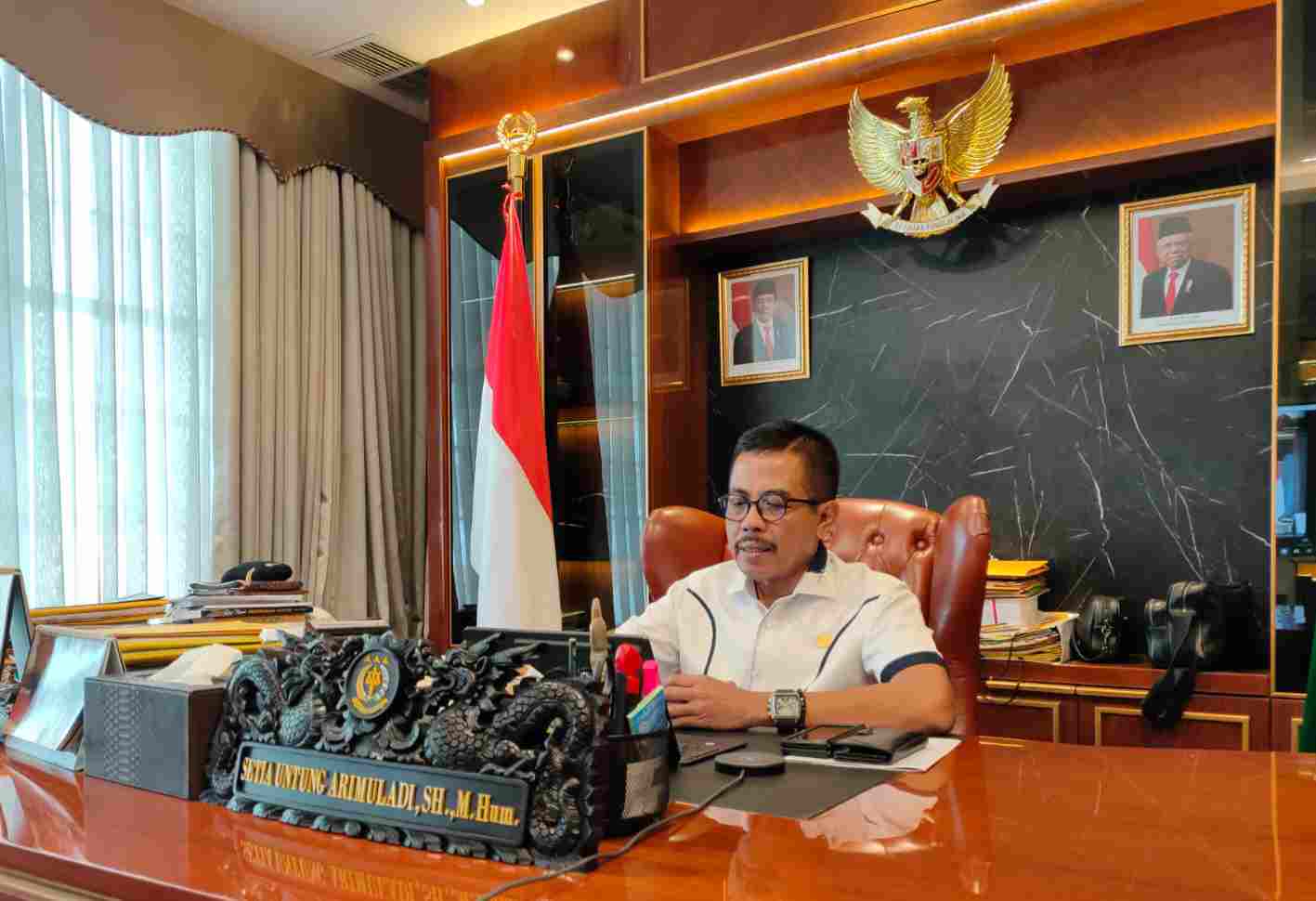 ZONAKAWANUA.COM,JAKARTA_Wakil Jaksa Agung RI Setia Untung Arimuladi, SH. M.Hum memberikan sambutan pada Penutupan Pelatihan Prinsip dan Kerangka Hukum Hak Asasi Manusia bagi Jaksa Penuntut Umum secara virtual dari ruang kerja Wakil Jaksa Agung di Gedung Menara Kartika Adhyaksa Kebayoran Baru Jakarta Selatan yang sudah berlangsung sejak Selasa 21 September 2021, Kamis (24/09/21).