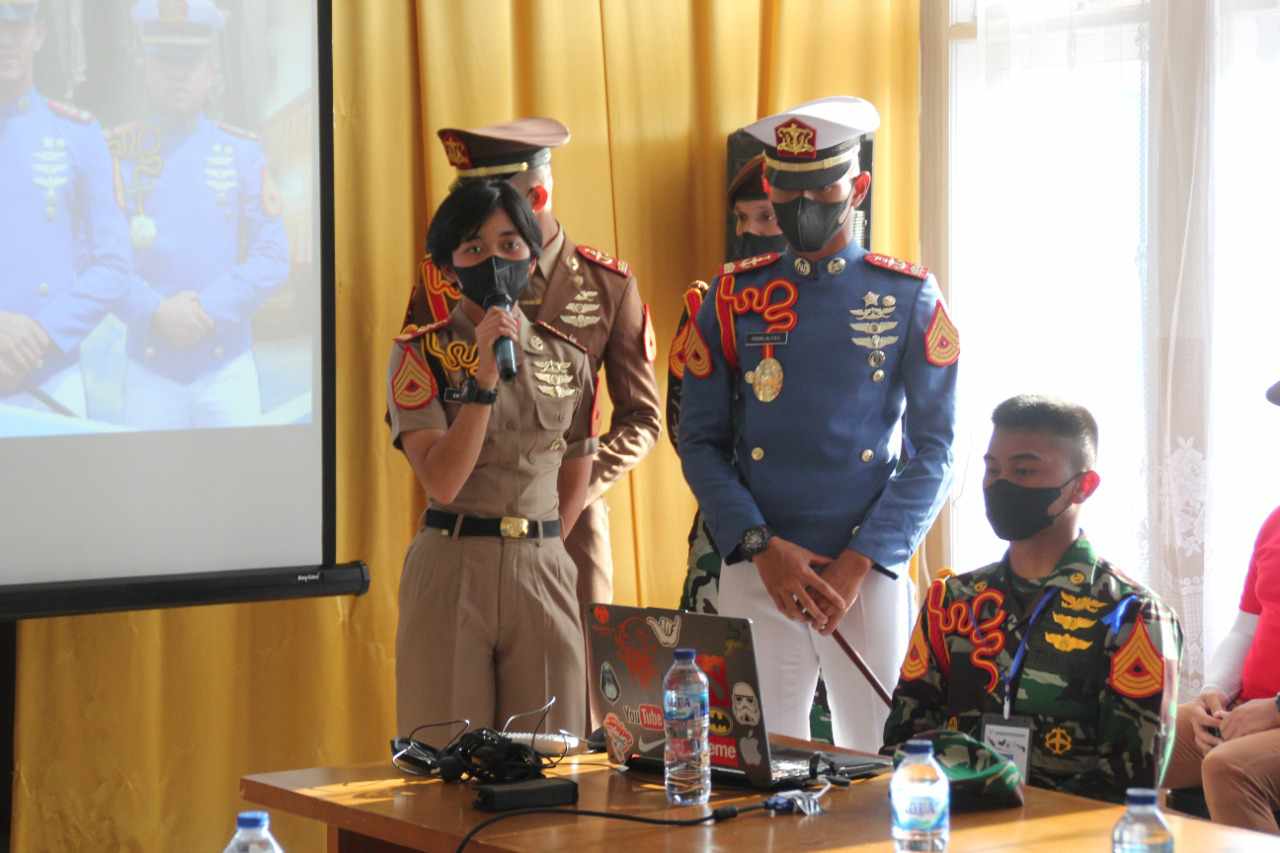 ZONAKAWANUA.COM,MANADO_Taruna Akademi Angkatan Udara Yogyakarta membekali anggota Pasukan Pengibar Bendera Sulawesi Utara pada kunjungan Latihan Cakra Wahana Paksa AAU 2021, di Ruang Rapat Markas Komando ‘Tentara Langit’ Lanud Sam Ratulangi, Manado, Rabu (29/09/2021).